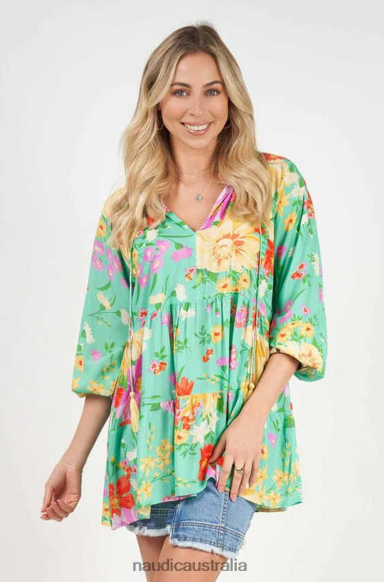 Invoke the very essence of Spring wearing this stunning Naudic long sleeve Matilda Top. Featuring the vibrant florals of our new Guilford Print, this top perfectly combines comfort with gorgeous, effortless style. Featuring tassels and an feminine frilled collar, this elegant top is a perfect choice to take you through the day and into the night.