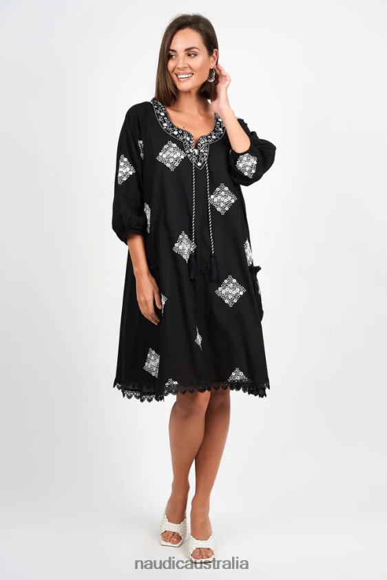 This beautiful Sao Paulo Long Sleeve Dress is part of our exquisite Vintage Collection and showcases our stunning Diamond Schiffli Print. This stylish frock features delicately embroidered diamond motifs with mirrored detailing that are guaranteed to help you stand out in a crowd! A proven must have shape in your wardrobe for that everyday go to dress which can be worn all year. Beautiful signature embroidery around the neckline, tassels and accent trimmings on the pockets and hemline make this Sao Paulo extra special!